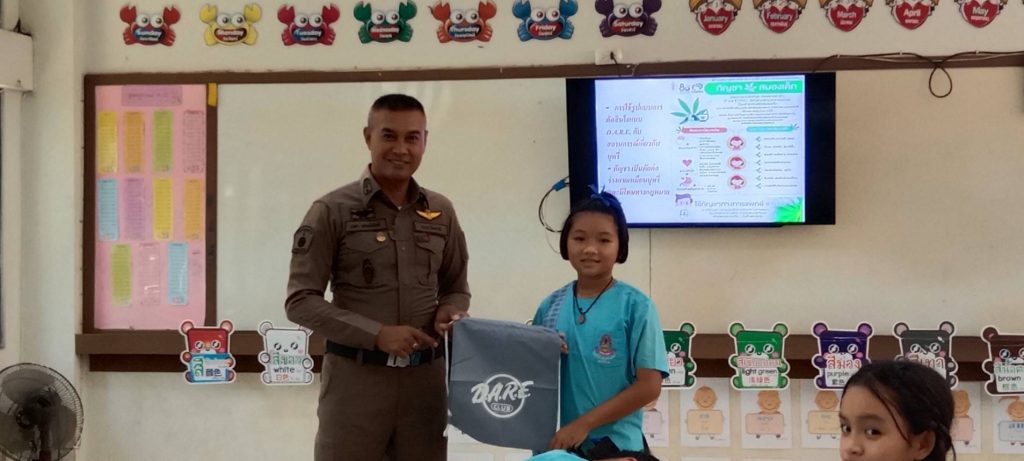 พ.ต.ท.เวหา พรมภิภักดิ์ สวป.สภ.หอคำ ครูตำรวจ D.A.R.E. เข้าดำเนินการตามโครงการการศึกษาเพื่อต่อต้านการใช้ยาเสพติดในเด็กนักเรียน ( D.A.R.E.ประเทศไทย ) ระดับชั้น ป.5 ณ รร.บ้านห้วยเซือมเหนือ ต.ไคสี อ.เมืองบึงกาฬฯ บทที่ 4 เหล้ากับนักเรียน เพื่อให้เด็กนักเรียนได้เรียนรู้ข้อเท็จจริงและผลกระทบของการดื่มเหล้าที่มีต่อสมองและร่างกาย สามารถใช้รูปแบบการตัดสินใจแบบ D.A.R.E. เมื่อต้องเผชิญกับสถานการณ์การถูกชวนให้ดื่มเหล้า