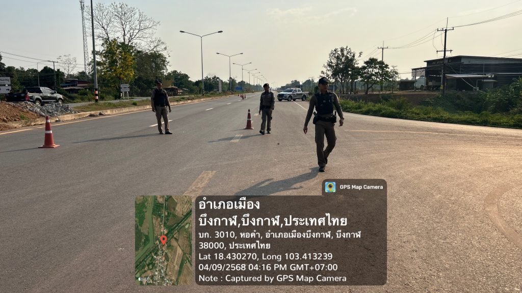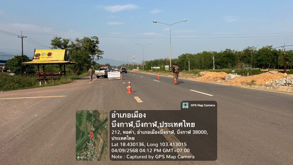 พร้อมด้วยร้อยเวร20/สายตรวจ/จราจร ตั้งจุดตรวจ/จุดก้าวสกัด บนถนนหมายเลข 212 บึงกาฬ-หนองคาย บ.สะง้อ ต.หอคำ ฯเพื่อป้องกันการลำเลียงยาเสพติดและสิ่งผิดกฎหมายอื่นเข้าสู่พื้นที่ตอนใน เหตุการณ์ทั่วไปปกติ