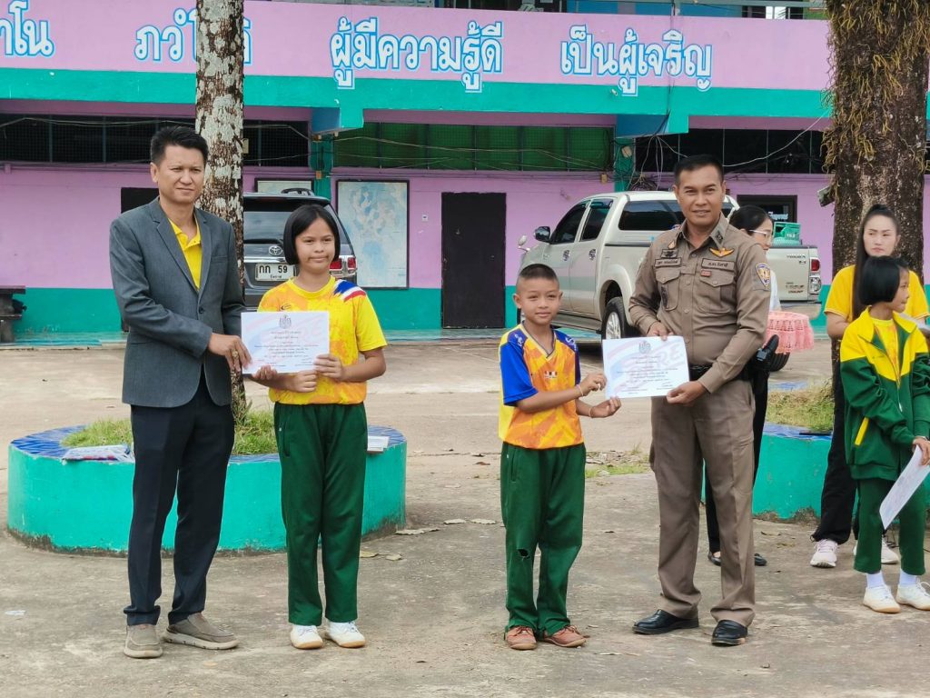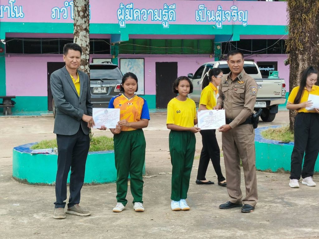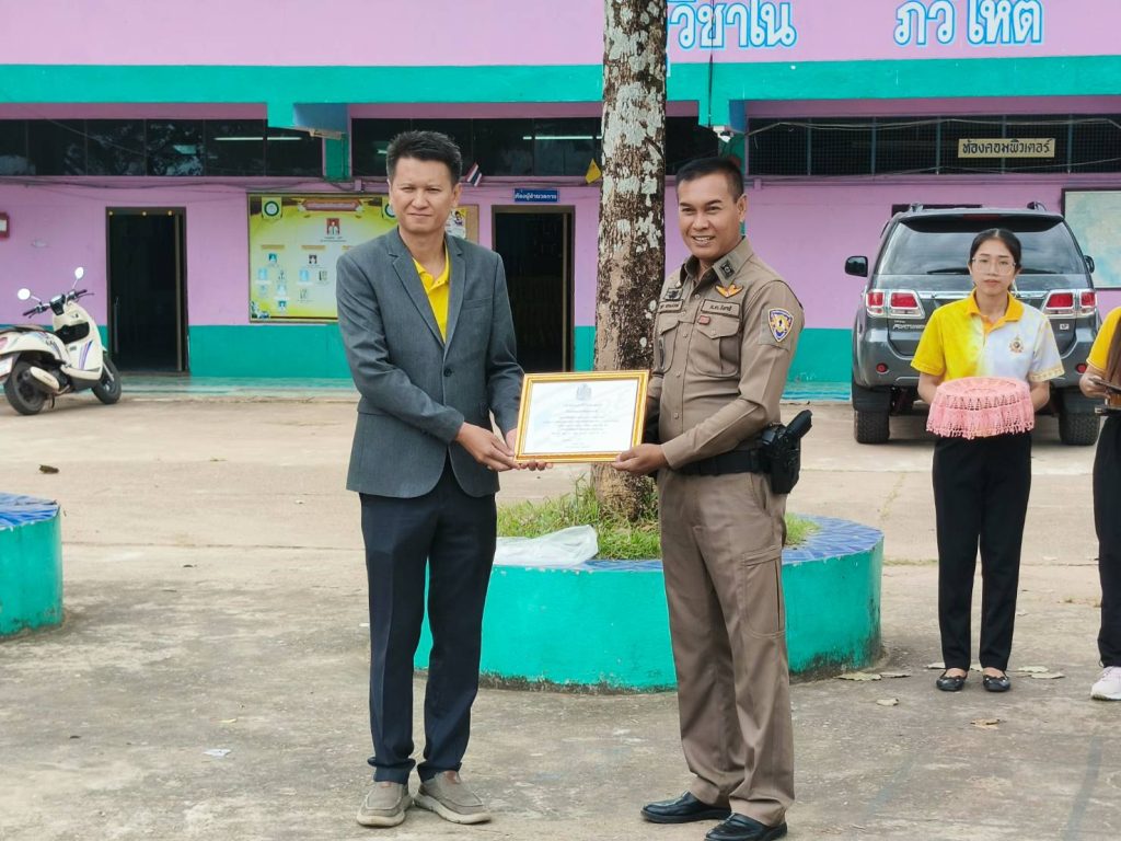 วันที่ 4 พ.ย. 67 เวลา 09.00 น. พ.ต.ท.เวหา พรมภิภักดิ์ สวป.สภ.หอคำ (ครูตำรวจแดร์) มอบใบประกาศนียบัตรนักเรียน D.A.R.E. ที่จบหลักสูตรตามโครงการการศึกษาเพื่อต่อต้านการใช้ยาเสพติดในเด็กนักเรียน (D.A.R.E.ประเทศไทย) โดยมีนายภูริพงษ์ ภูริศรี ผอ.รร.หอคำฯ พร้อมคณะครูและนักเรียน ณ ลานกิจกรรมหน้าเสาธง โรงเรียนหอคำพิทยาสรรค์