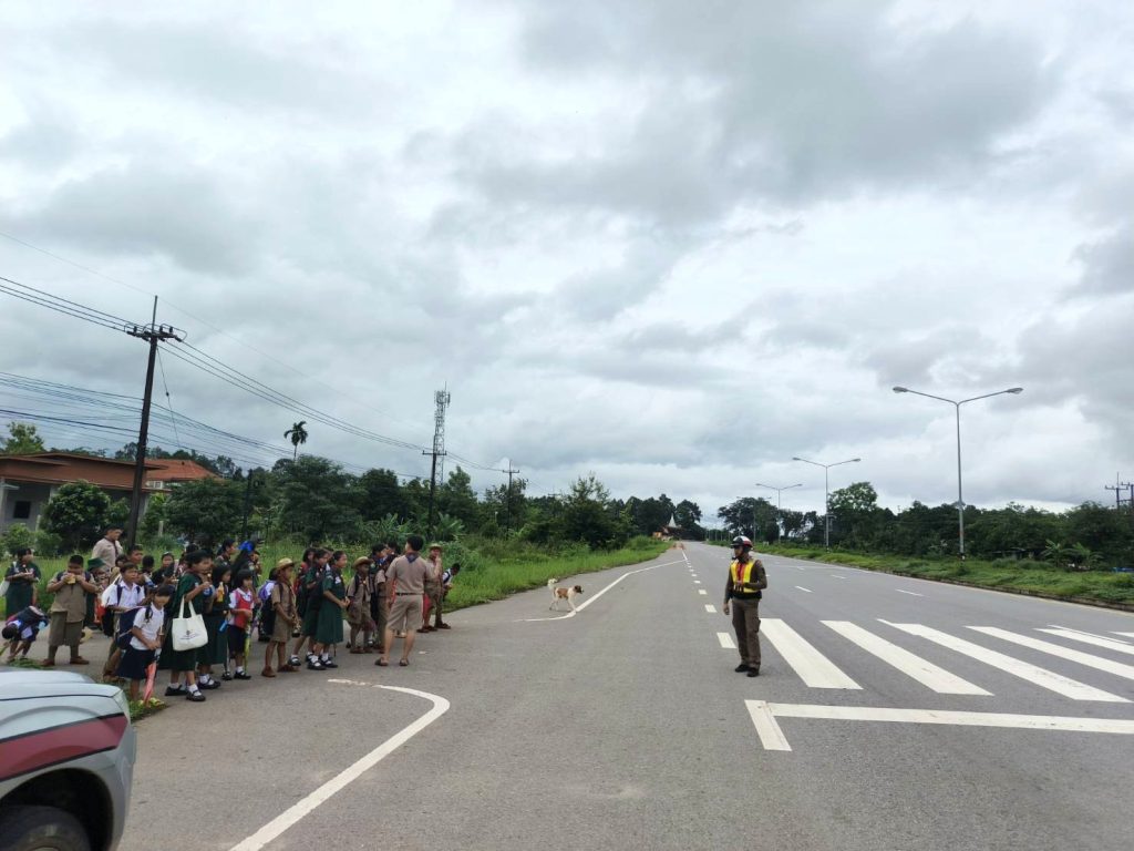 ร้อยเวร20 พร้อมชุดสายตรวจ/จราจร อำนวยความสะดวกการจราจรให้แก่เด็กนักเรียน โรงเรียนแก่งอาฮง