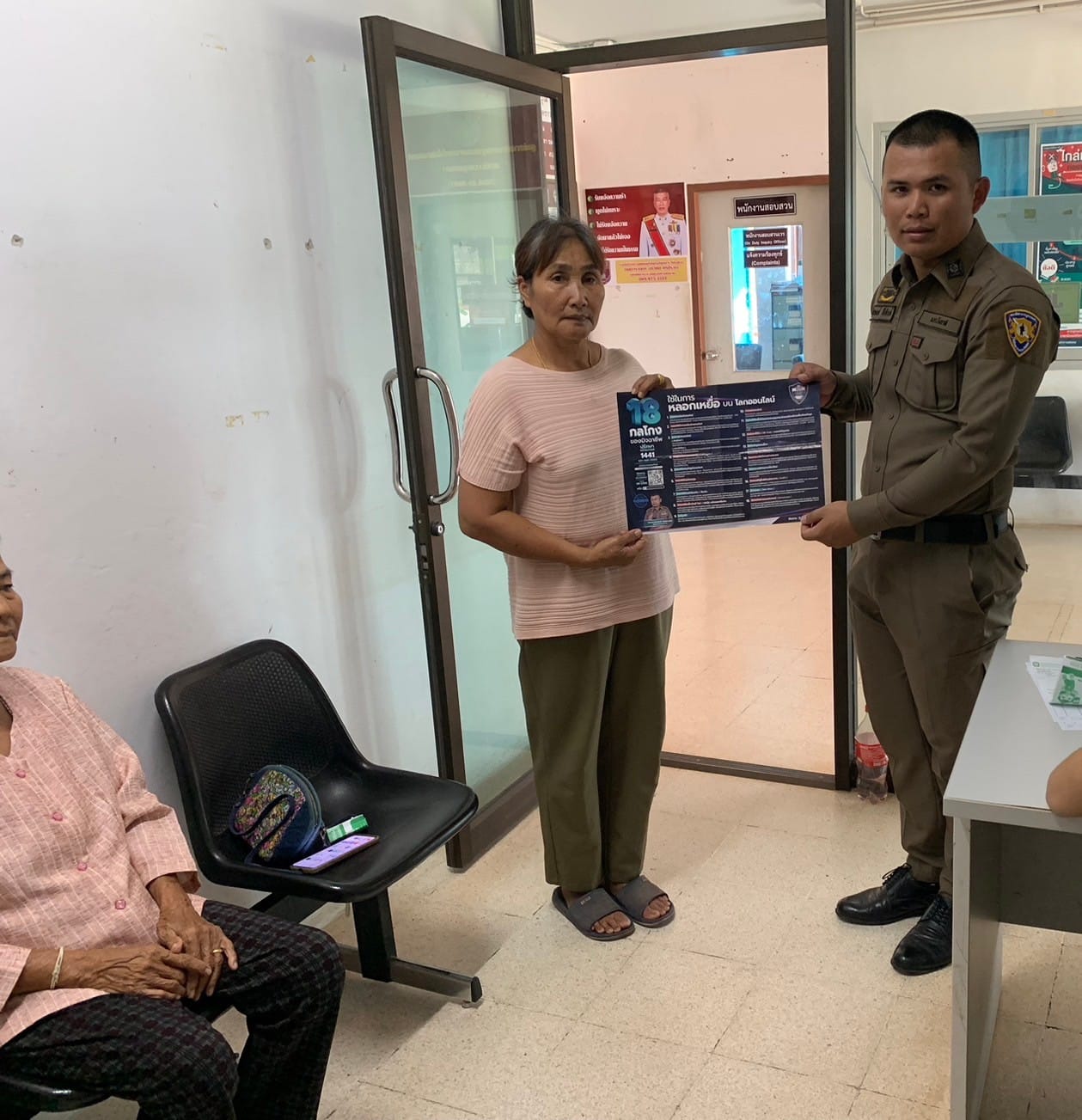 เจ้าหน้าที่ตำรวจ สภ.หอคำ ประชาสัมพันธ์ 18 กลโกงของมิจฉาชีพ ให้กับประชาชนผู้มาติดต่อราชการ เพื่อเป