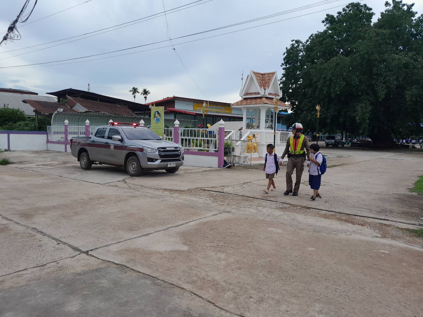 ร้อยเวร 20/จราจร ปฏิบัติหน้าที่อำนวยความสะดวกด้านการจราจร หน้าโรงเรียนหอคำพิทยาสรรค์ เพื่อให้นักเรีย