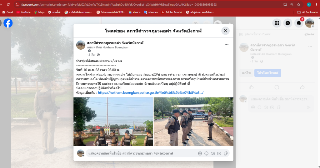 วันที่ 10 เม.ย. 68 เวลา 08.00 น.พ.ต.ท.ไพศาล ต้นแก้ว รอง ผกก.ป.ฯ ได้เรียกแถว ร้อยเวร20/สายตรวจ/จราจร